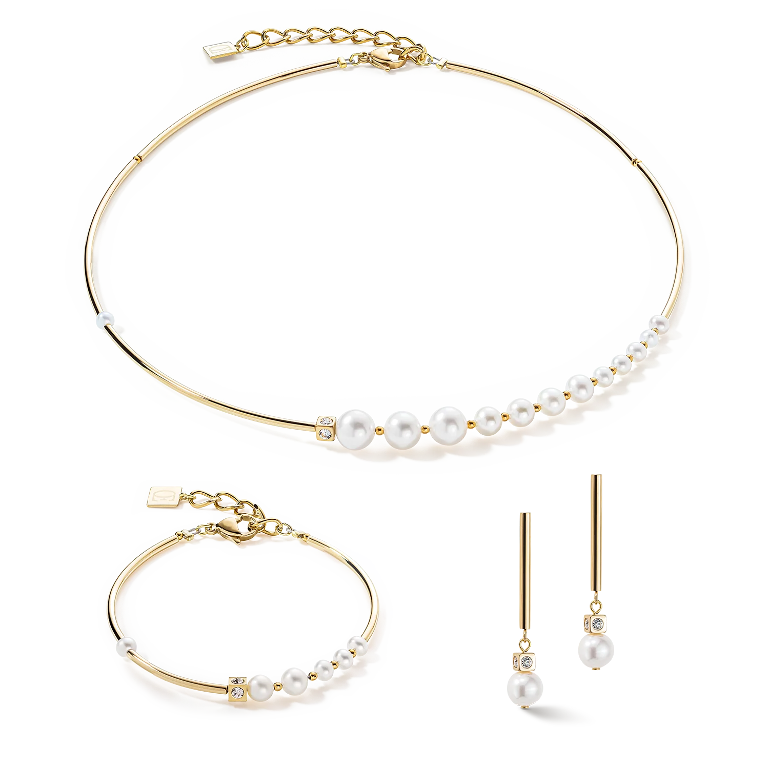 Bracelet Asymmetry Freshwater Pearls & stainless steel white-gold