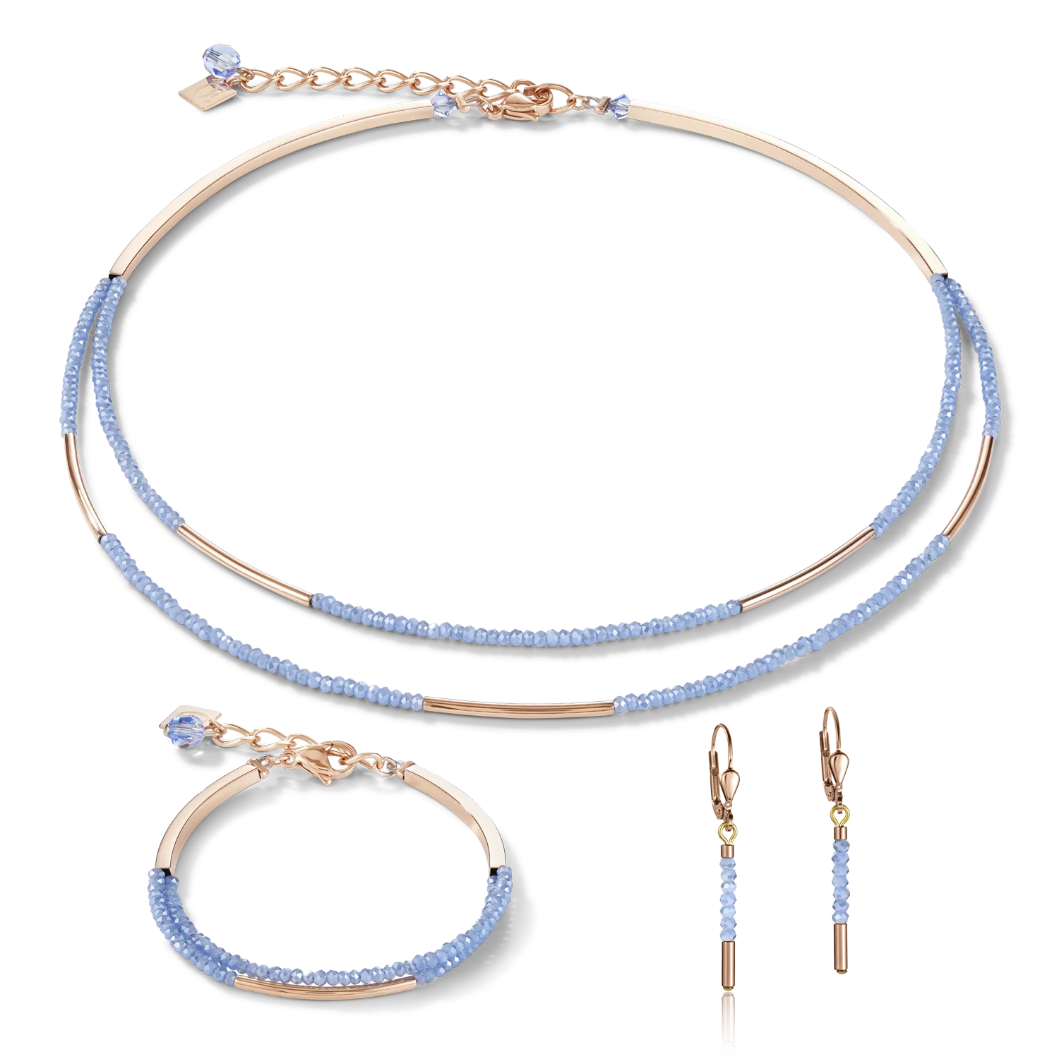 Bracelet Waterfall small stainless steel rose gold & glass light blue