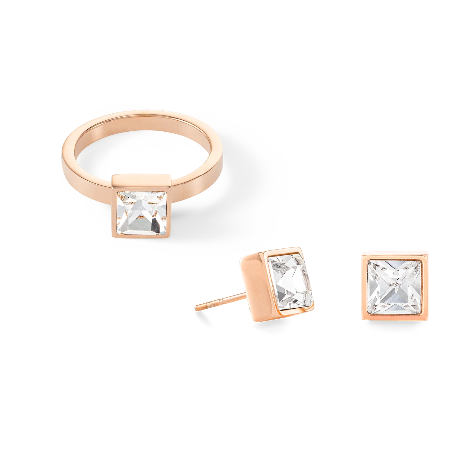 The stunning Brilliant Square earrings in crystal and rose gold add sparkle, whatever the occasion. Complete the look with the matching Brilliant Square rings.