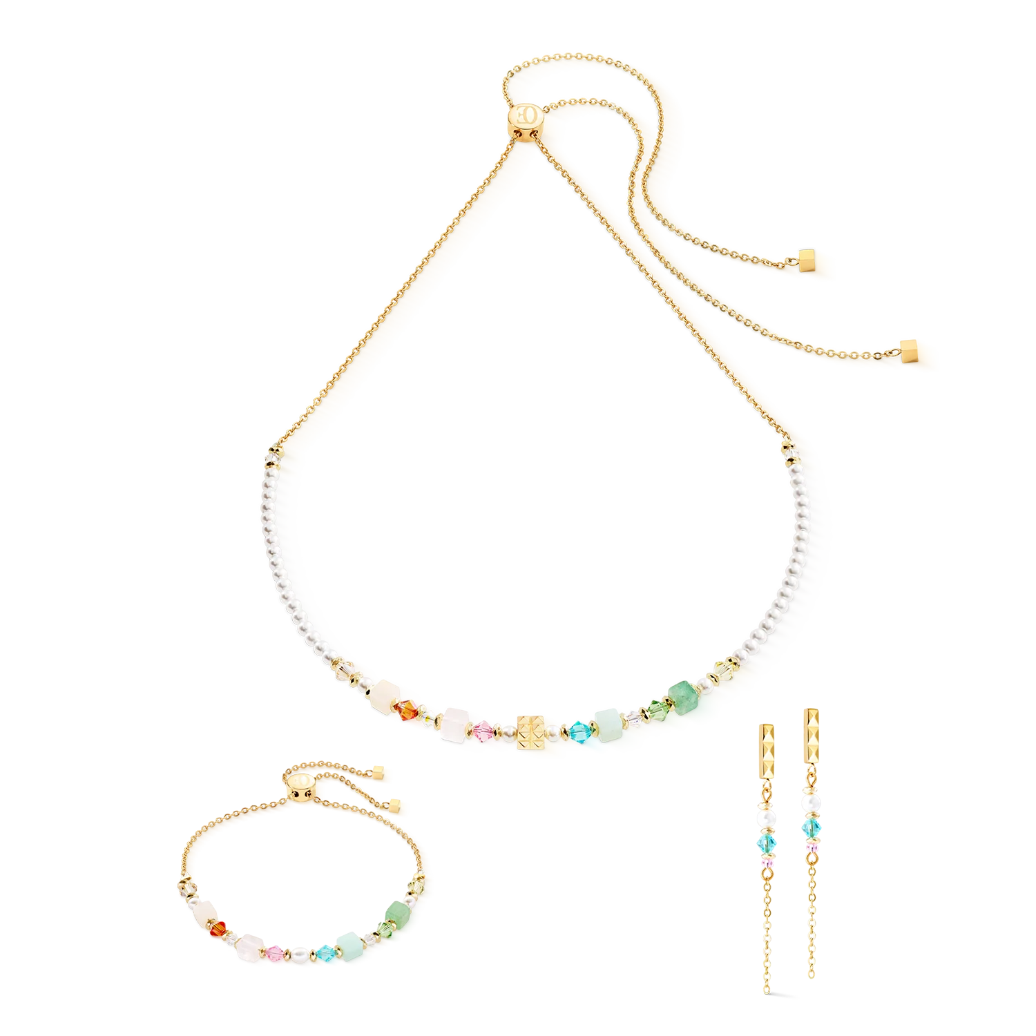The Cube Princess Fusion Blossom gold earrings reinterpret the collection’s pastel palette in a refined, dynamic silhouette. A spike stud element creates a clean, modern accent, while Crystal Pearls by Swarovski® and sparkling Swarovski® crystals add luminous depth.
