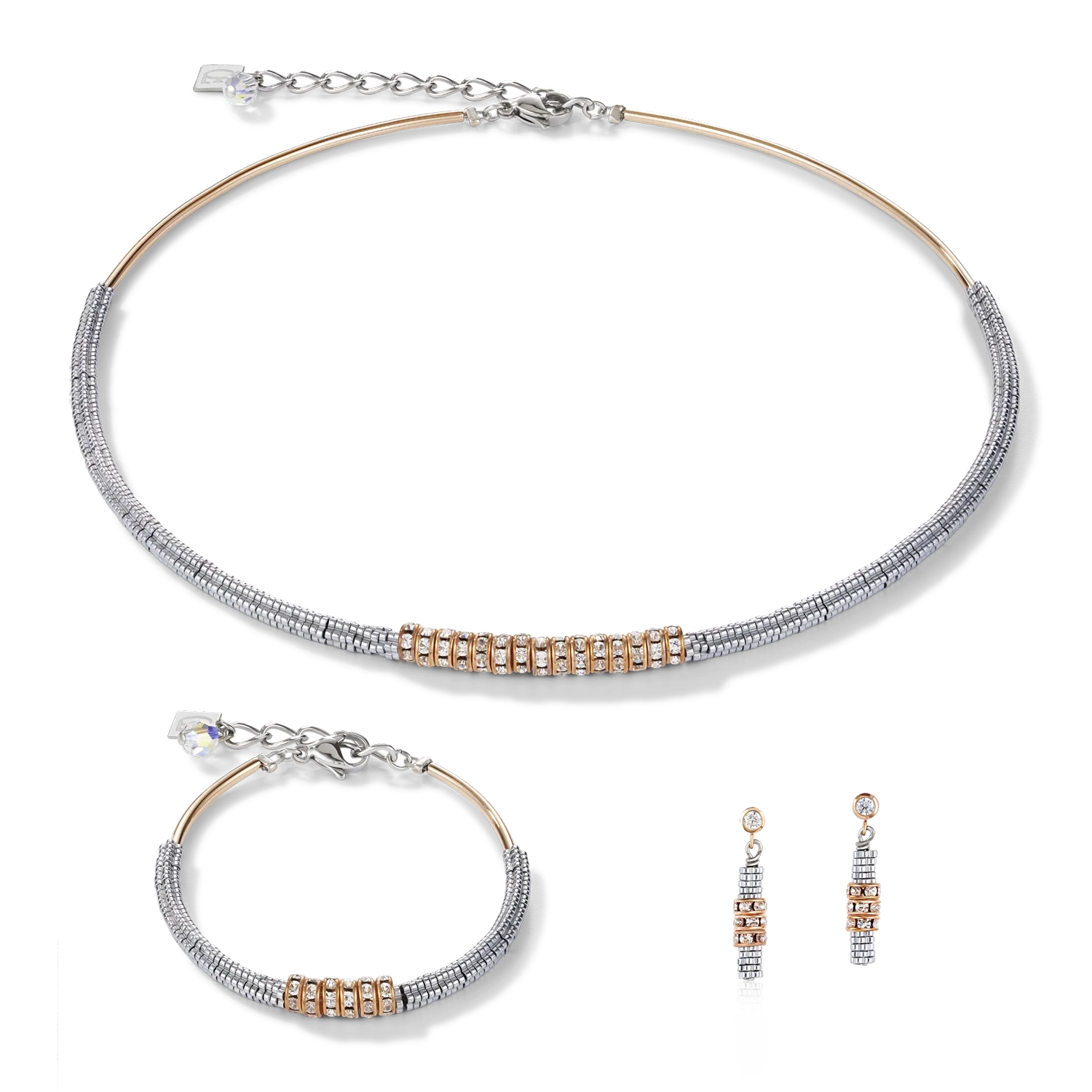 Earrings Haematite & rhinestone crystal