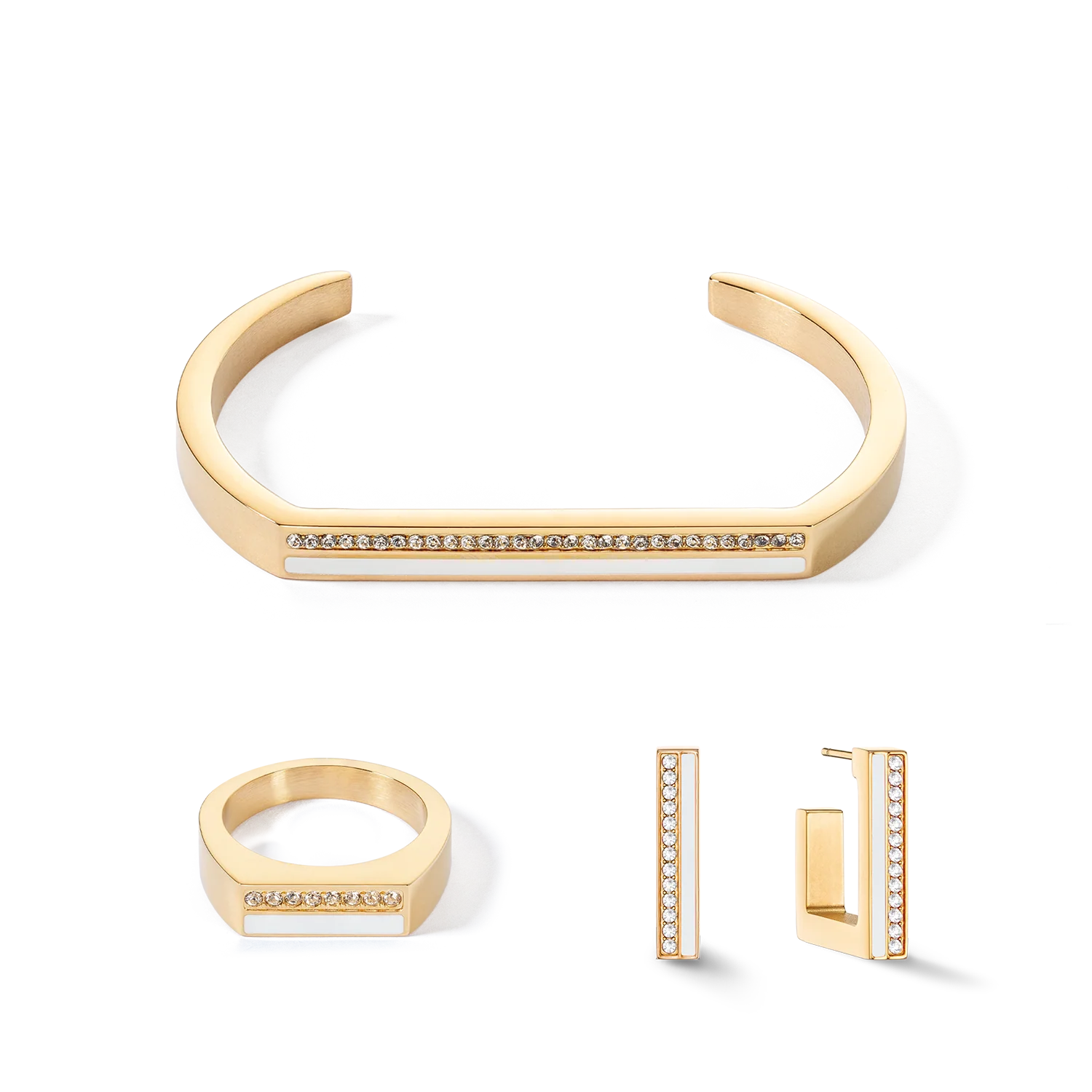 Are you ready for an eye-popping jewellery trend? Our square stainless steel hoops in gold and white are an absolute must for all the fashion-conscious out there. With an exciting combination of vibrant crystals and coordinating coloured stripes, these earrings will give your outfit a fresh, modern look. Matching bangle and rings available.