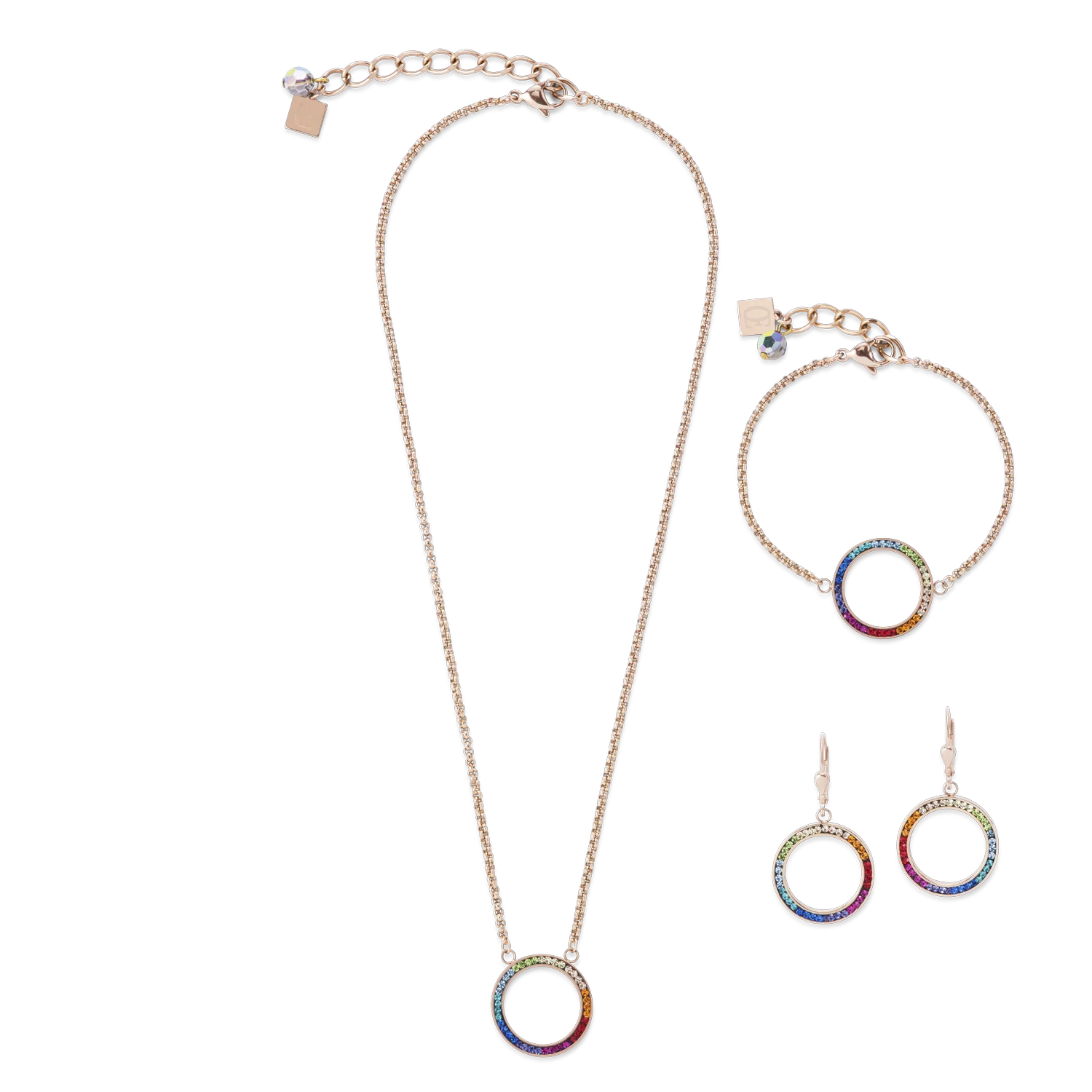 Earrings Ring Crystals pavé & stainless steel rose gold & multicolour