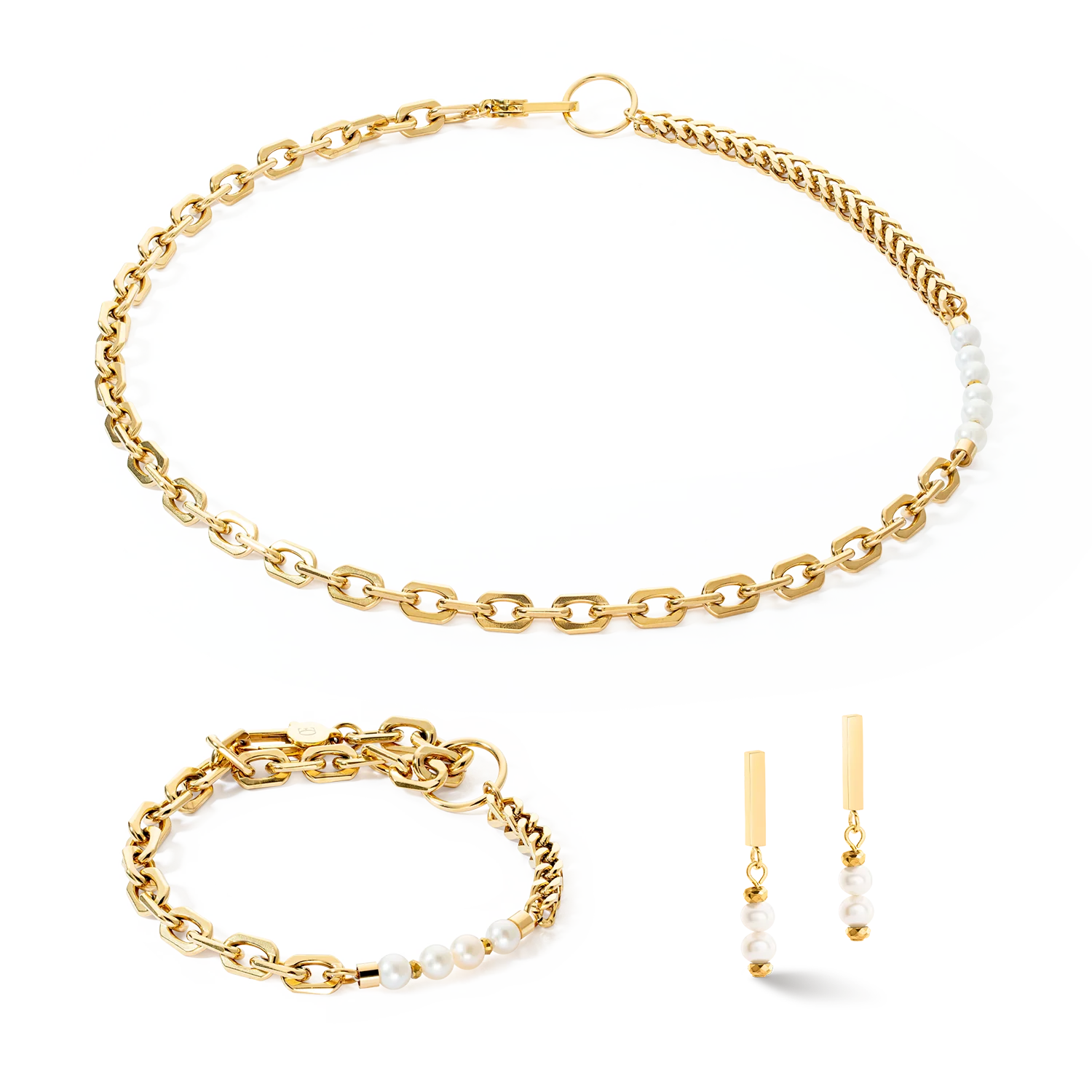 The gold Shape Shifter earrings with delicate freshwater pearl pendants can be worn for all sorts of occasions. They will add a subtle elegance to your everyday outfits and are the perfect accessory for special occasions, too. These stud earrings are great to mix and match. They can also be worn with other pieces from the Shape Shifter collection or different golden accessories.