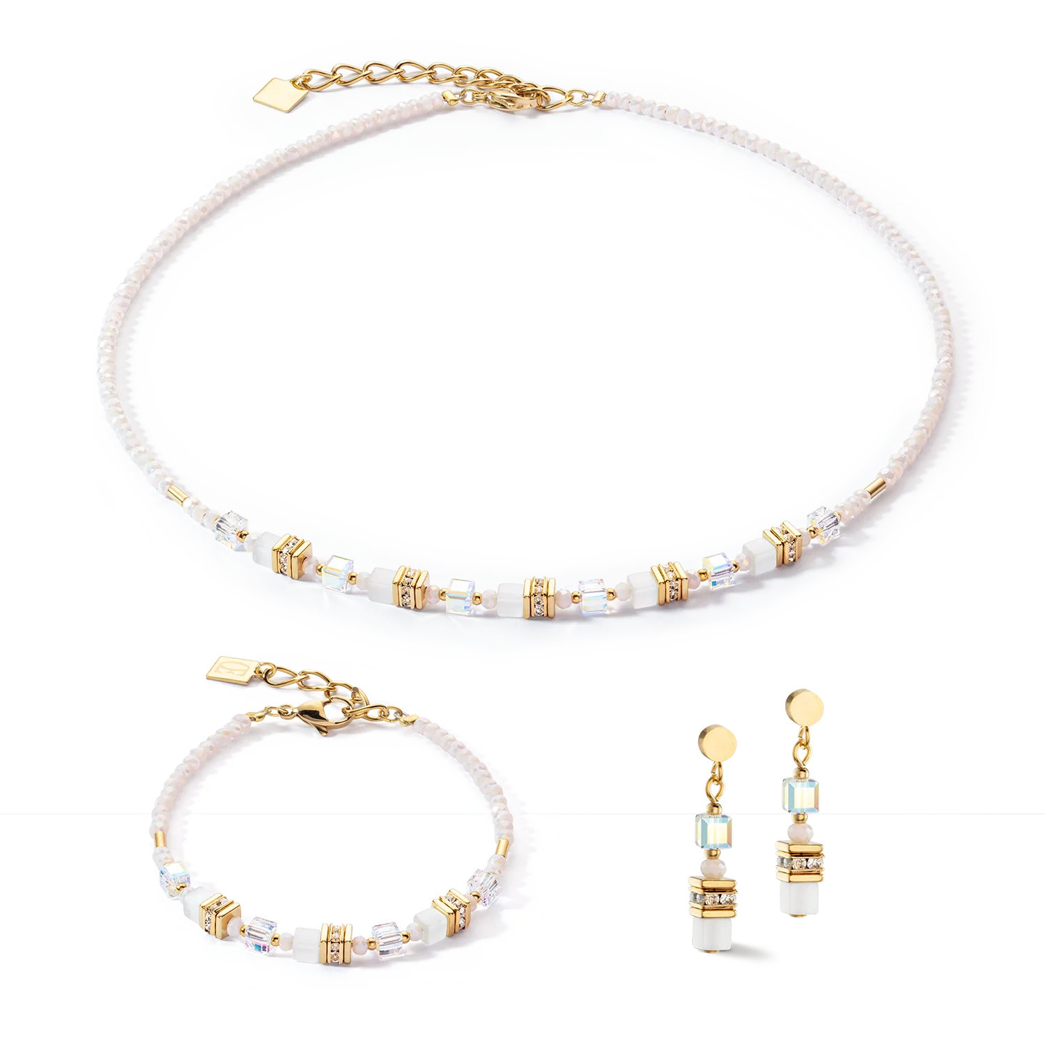 Fine earrings in a Mini Cubes design. The white and gold colourway makes them perfect for the forthcoming wedding season.