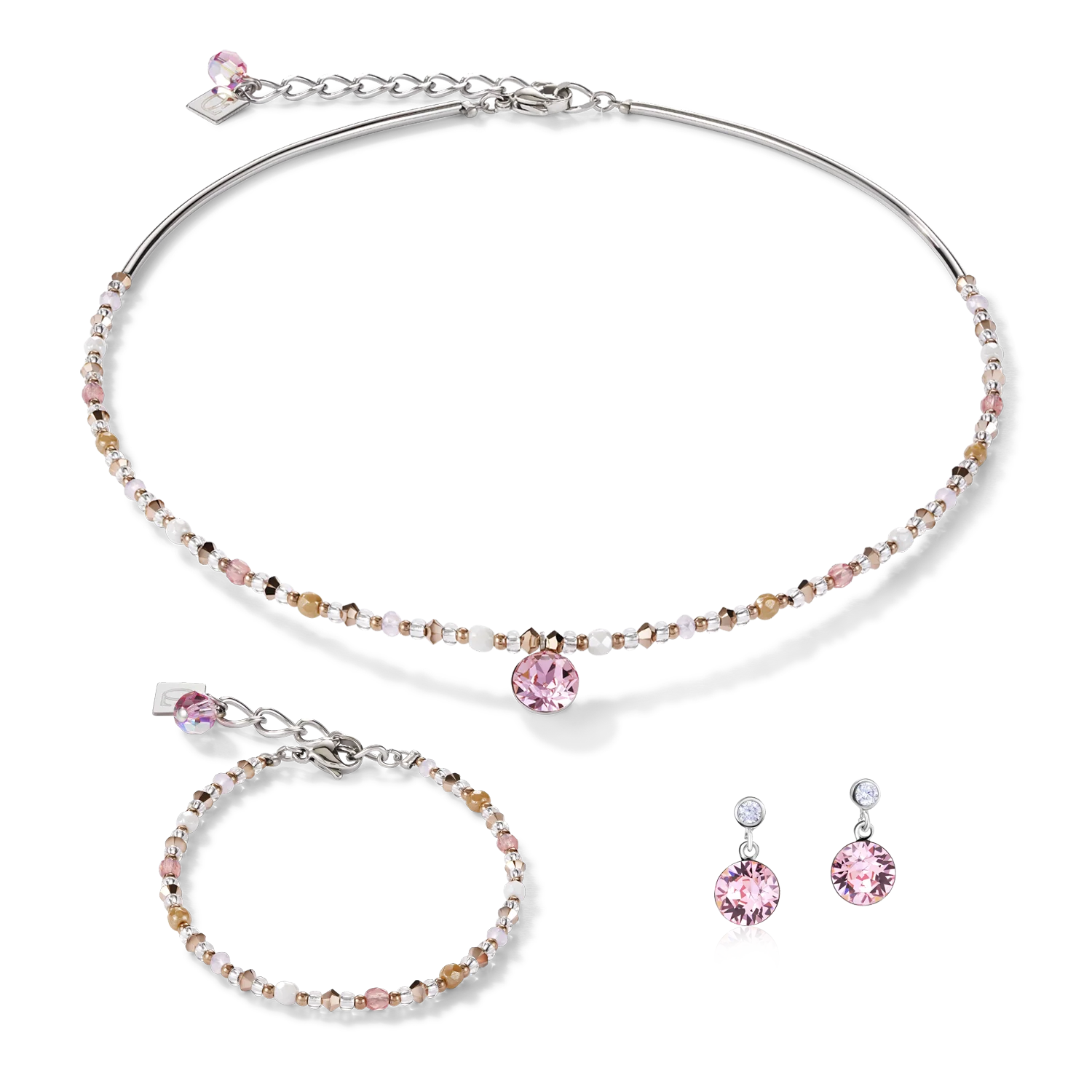 Necklace Crystals & stainless steel light rose