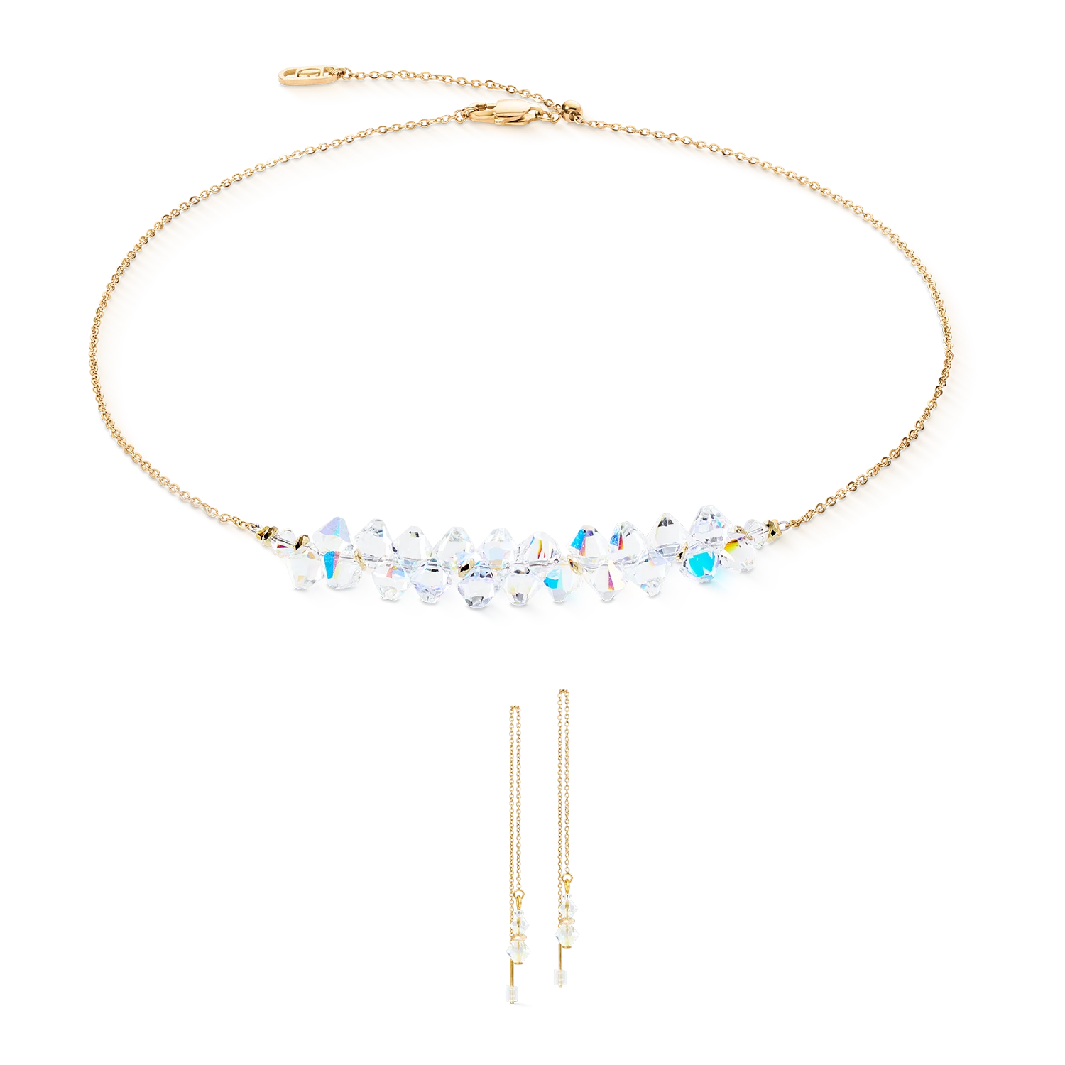 The Dancing Crystals Pure necklace gold-crystal reinterprets the iconic Dancing Crystals collection in a clean and refined aesthetic. A floating sequence of Swarovski® crystals captures the light from every angle, creating vibrant reflections with every movement.