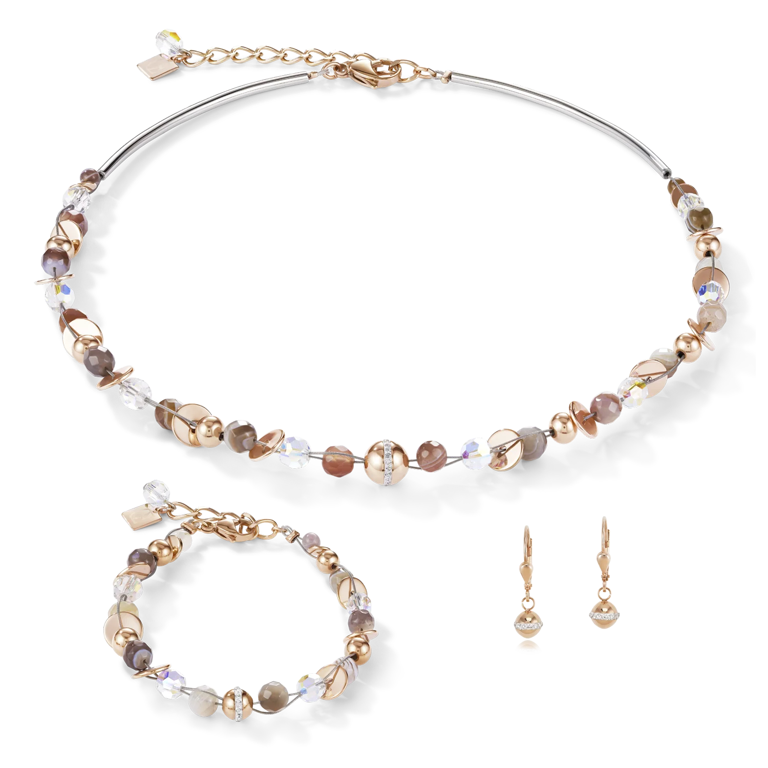 Necklace TwistedPEARLS Botswana agate & stainless steel rose gold beige-grey
